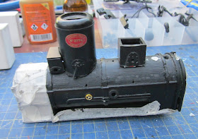 ..... and the boiler a coat of grey primer before having 1mm thick and 3mm wide plasticard boiler bands glued on with solvent.