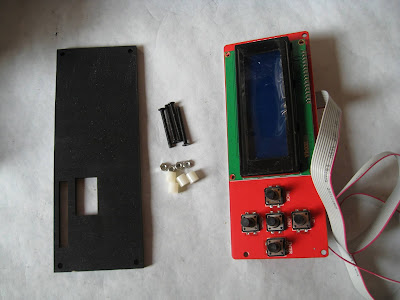 The LCD screen and its mounting plate, together with four M3 x 30 screws and 10mm plastic spacer sleeves were identified.The screws were passed through the holes in the top chassis plate and the spacers slid on.