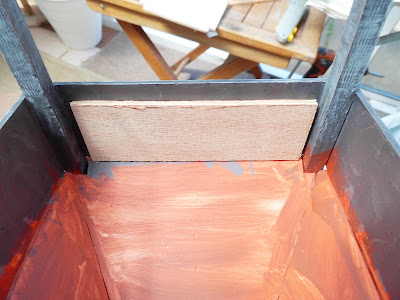 The legs were then glued into the holes in the hopper, with 180mm from the bottom of each leg to the base of the hopper.